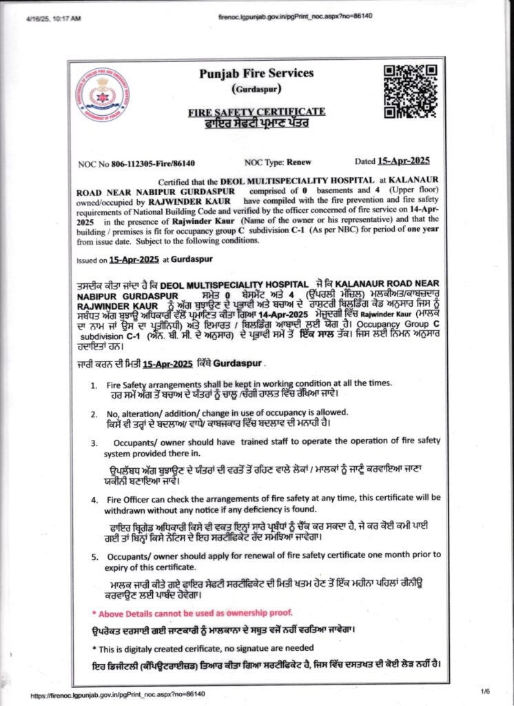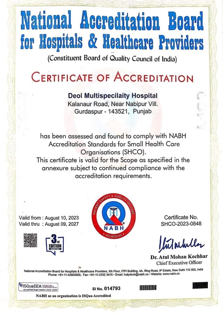 Deol Multispeciality Hospital, Kalanaur Road, Nabipur, Gurdaspur (PB.)143521